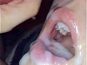 Teen takes massive cum in mouth in slow motion
