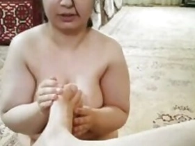 Wrapping my toes around your hard cock