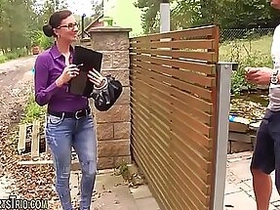 Blonde pregnant slut threesome fucked