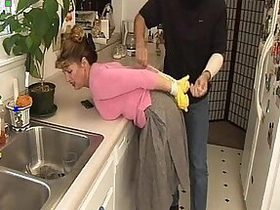 Naughty housewife gets busy in the kitchen