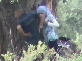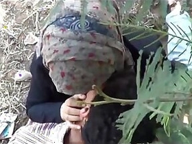 Arab girl performs a public blowjob on her lover in a MMS video