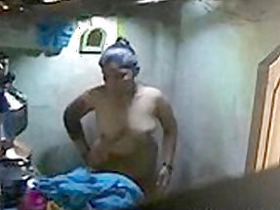 Tamil auntie records her bathing session
