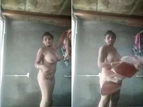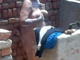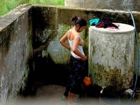 Desi bhabhi's exclusive bathing and clothing in village video