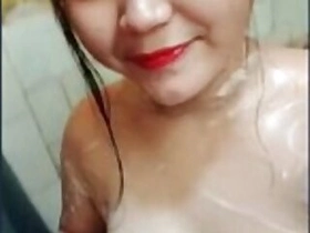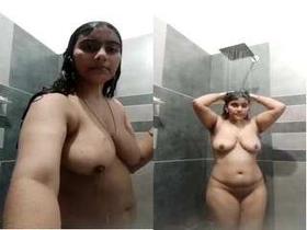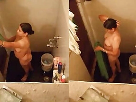 Tamil auntie films herself bathing in the shower