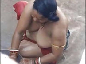 Bootylicious desi aunty takes bath in the village on XXX spy video