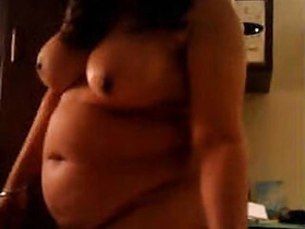 Fat Desi woman with her huge hooters records sex clip in bathroom