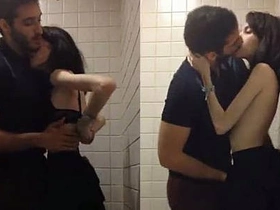 Marina Fraga gets her pussy pounded by her boyfriend in a public restroom