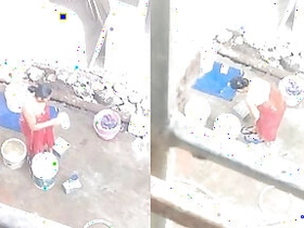 Innocent-looking woman caught on camera while bathing