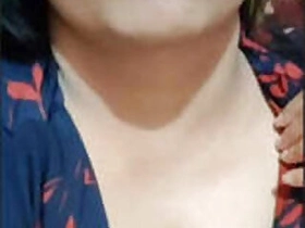 Indian bhabi flaunts her ample bosom on camera