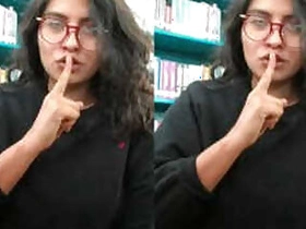 Desi sex student pulls T shirt up to demonstrate XXX breasts in a library