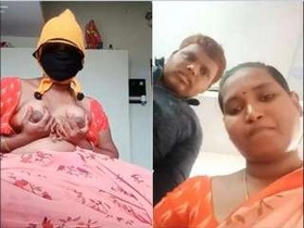 Sumitha's aunt squeezes her breasts in oiled video