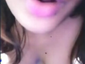 Sexy cam Girl playing with Nice big Tits Strips for Boyfriend