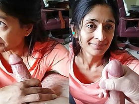 NRI wife gives a blowjob and swallows cum