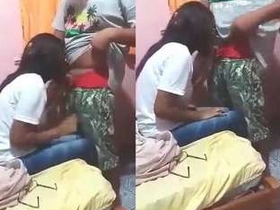 Two Tamil women giving a blowjob to a young man
