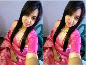 Exclusive photo shoot with a gorgeous Indian girl in a pink sari