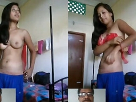 Indian amateur babe flaunts her big natural tits and pussy