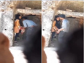 Indian couple enjoys outdoor sex on a bed
