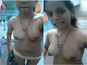 Exclusive cute Indian girl shows off her tits and pussy