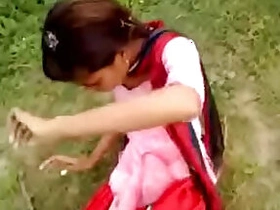 Indian village girl in uniform gets naughty in outdoor sex clip