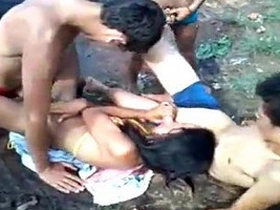 Indian call girl indulges in a wild orgy, pleasuring four men and getting her face fucked