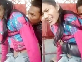 Lover fondles and presses boobs of Indian girl