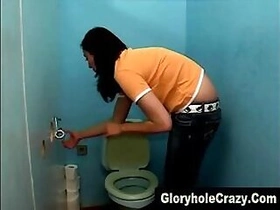 Euro bukkake babe masturbates at gloryhole
