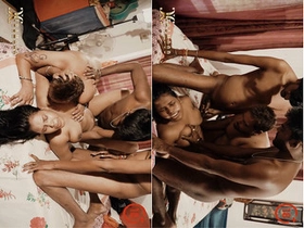 Indian girlfriends engage in group sex in a public space