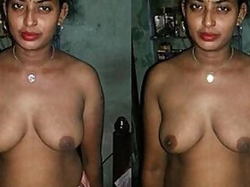 Obedient Desi wife with naked XXX boobs stays in front of her lover