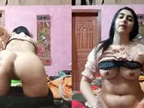 A masturbating NRI bhabhi shows off her big tits on camera
