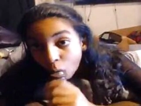 The young and perverted son teaches his stepmother, young how to suck her new husband older than she.
