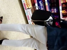 Candid Desi housewife white pants vpl