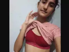 Cute Indian girl records a video for her lover with her big boobs on full display