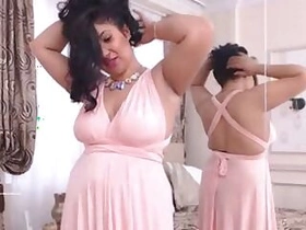 Desi camgirl lifts green dress to impress viewers with huge round tits
