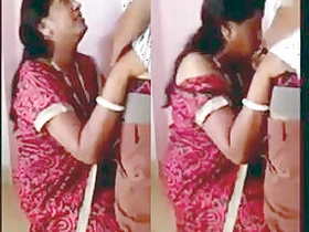 Indian aunt in red saree giving the best blowjob to her husband