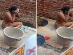 Desi woman caught bathing outdoors