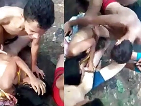 Indian bhabhi's outdoor threesome with two men