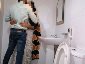 A Pakistani secretary gets naughty with her coworker in the office bathroom