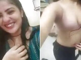 Beautiful Indian bhabhi flaunts her large breasts in a seductive manner