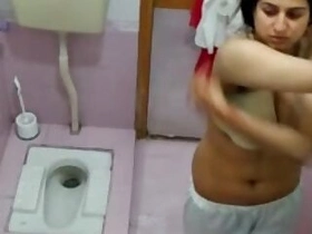Hot aunty from Delhi stripping at the bathroom
