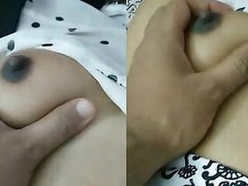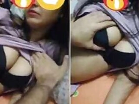 Teen from India sleeps but guy touches her XXX titties in a black bra