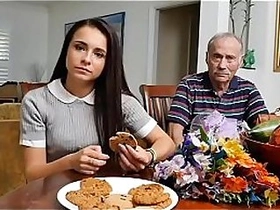 Young babe gets banged by footworship grandpa