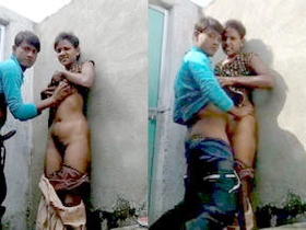 A couple in a village engages in a quick outdoor sexual encounter